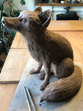 We have a fox that visits the Clayhouse garden regularly. We don't see it often but there's a clear track through the garden where it travels through. I was inspired to make a fox and here it is.